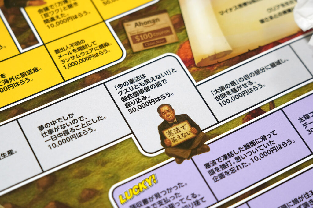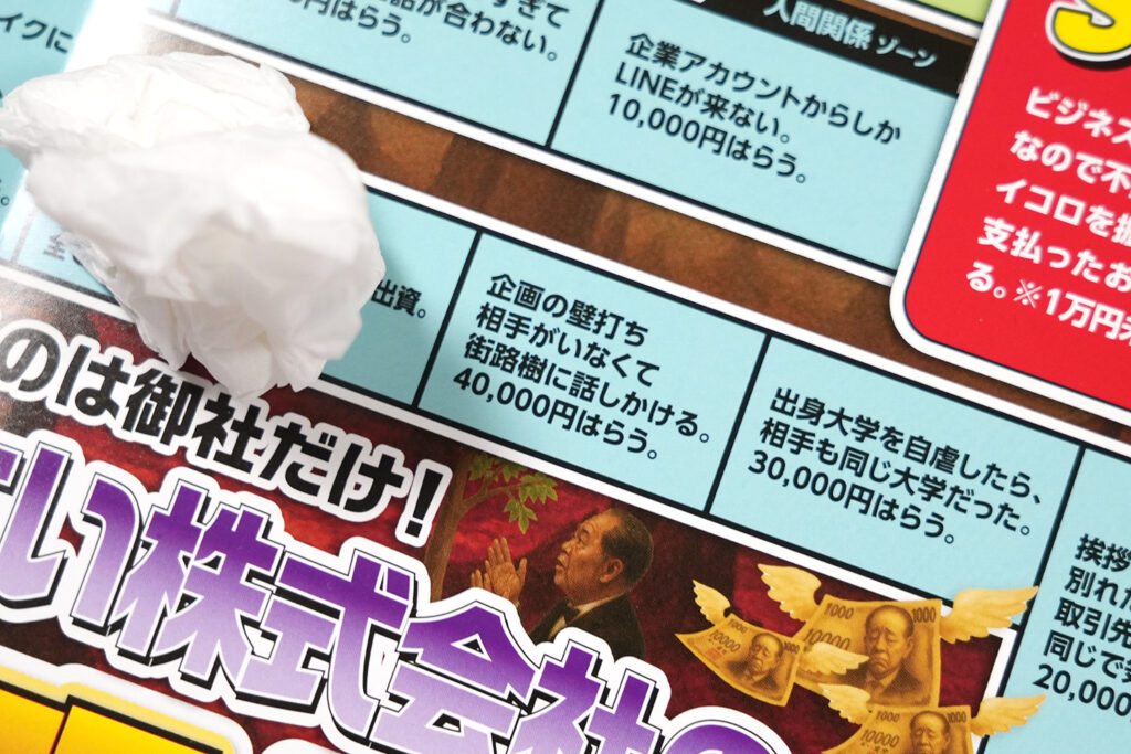ゲームで使うお札は、現行紙幣をモチーフにしたパロディーデザインで、肖像には約500社の会社設立・経営に携わった「日本資本主義の父」こと渋沢栄一さんを使っています。