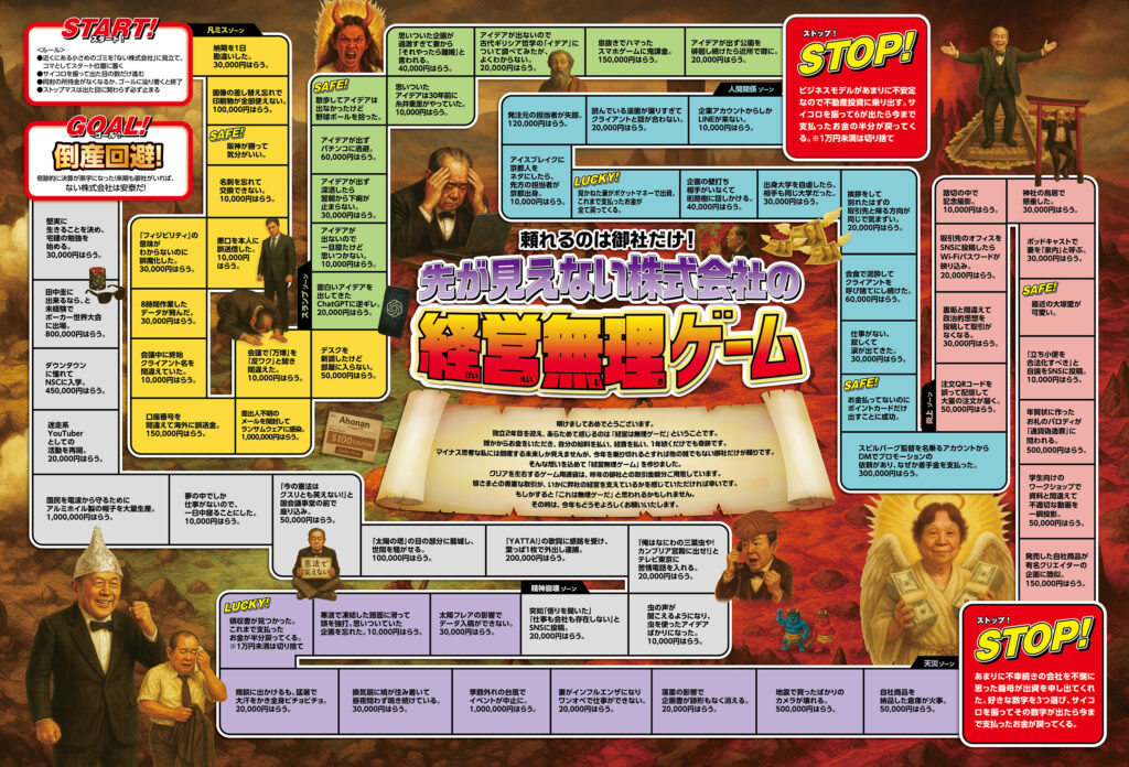 今回お送りした年賀状は『ない株式会社の経営無理ゲーム』という人生ゲーム風スゴロクです。